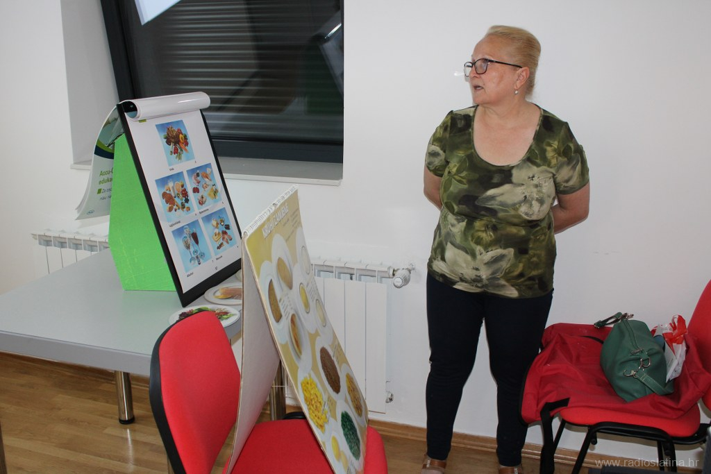 „Danas sam održala predavanje o prehrani za dijabetičare. Javnozdravstvene su akcije diljem Hrvatske pa se i mi na taj način uključujemo i dajemo naš prilog. Prehrana je vrlo važna u životu dijabetičara, a najčešći je problem njihova prekomjerna tjelesna težina. Pravilna prehrana i skidanje tjelesne težine je prava terapija za 50 % bolesnika“, kaže umirovljena viša medicinska sestra Greta Perković, inače srebrni edukator za dijabetes, tip 2.